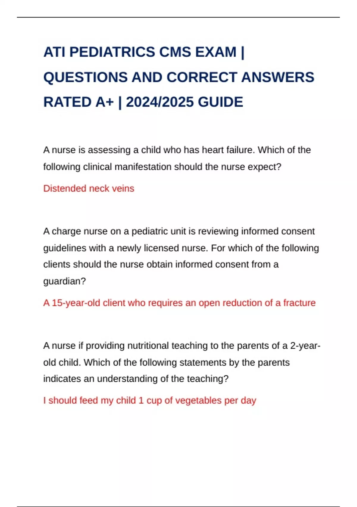 ATI PEDIATRICS CMS EXAM |