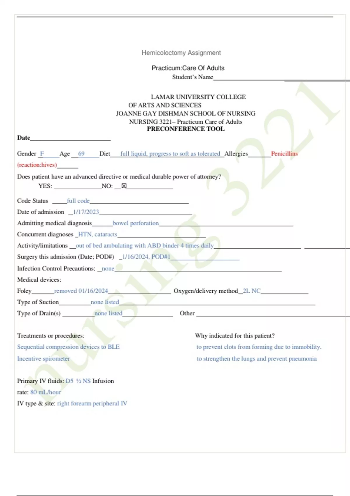 , NURSING 3221– Practicum Care of Adults PRECONFERENCE