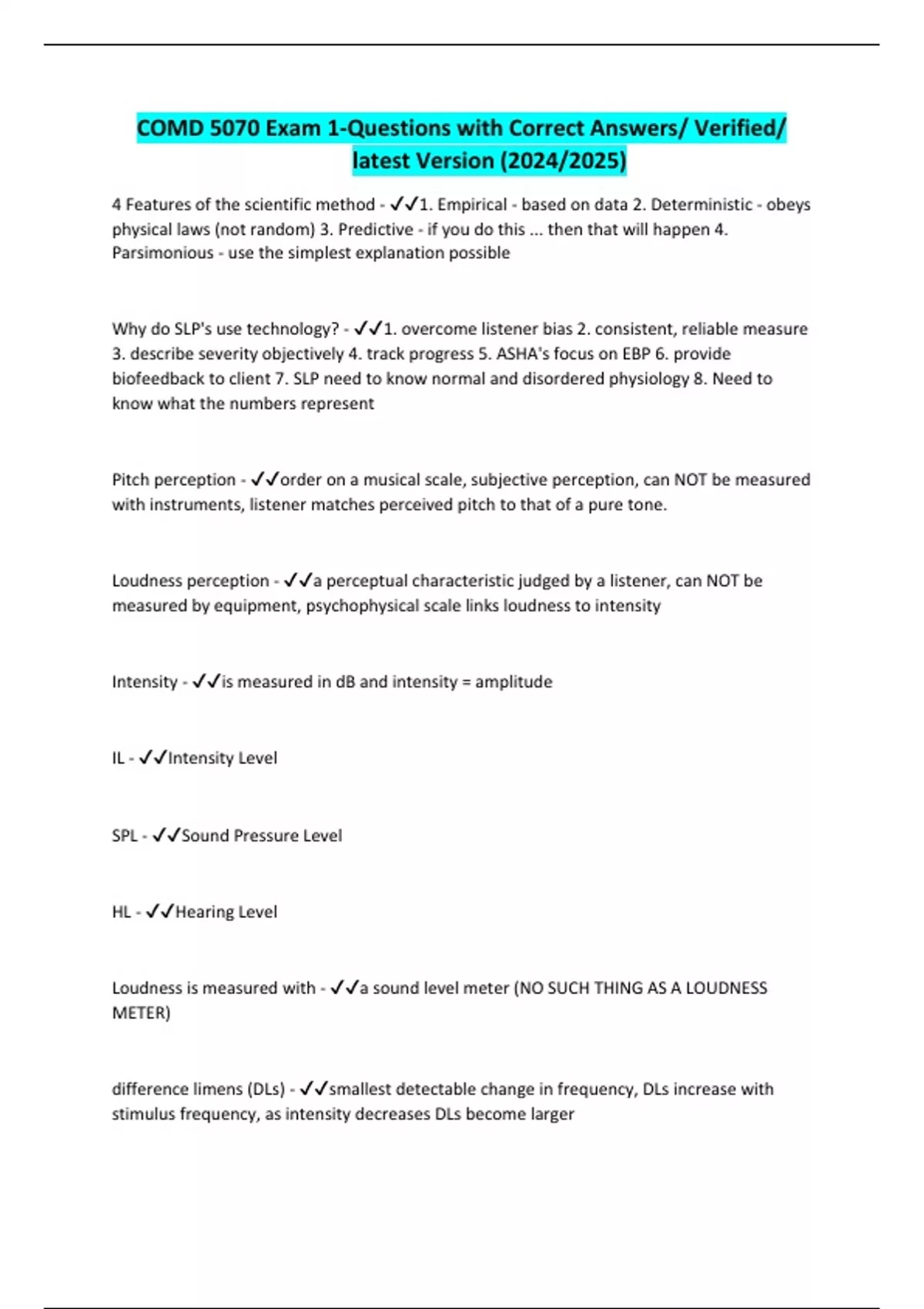 COMD 5070 Exam 1-Questions with Correct Answers/ Verified/ latest Version (2024/2025)