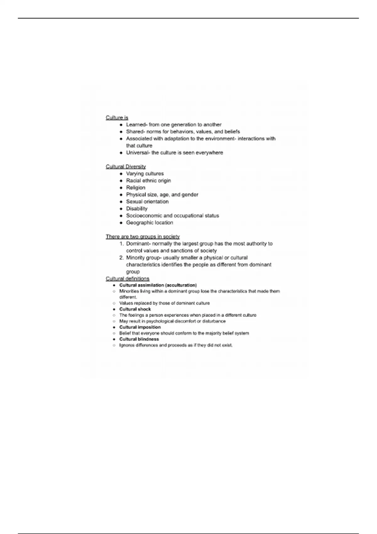 NUR 112 Culture and Diversity Notes
