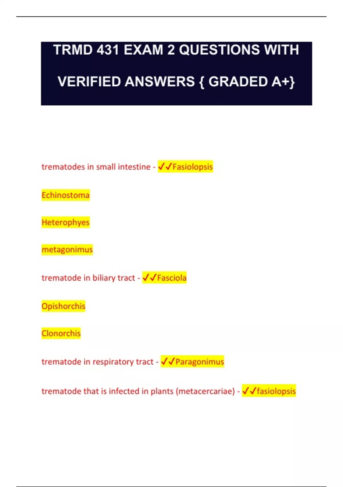 trematode that is infected in plants (metacercariae) - ✔✔fasiolopsis