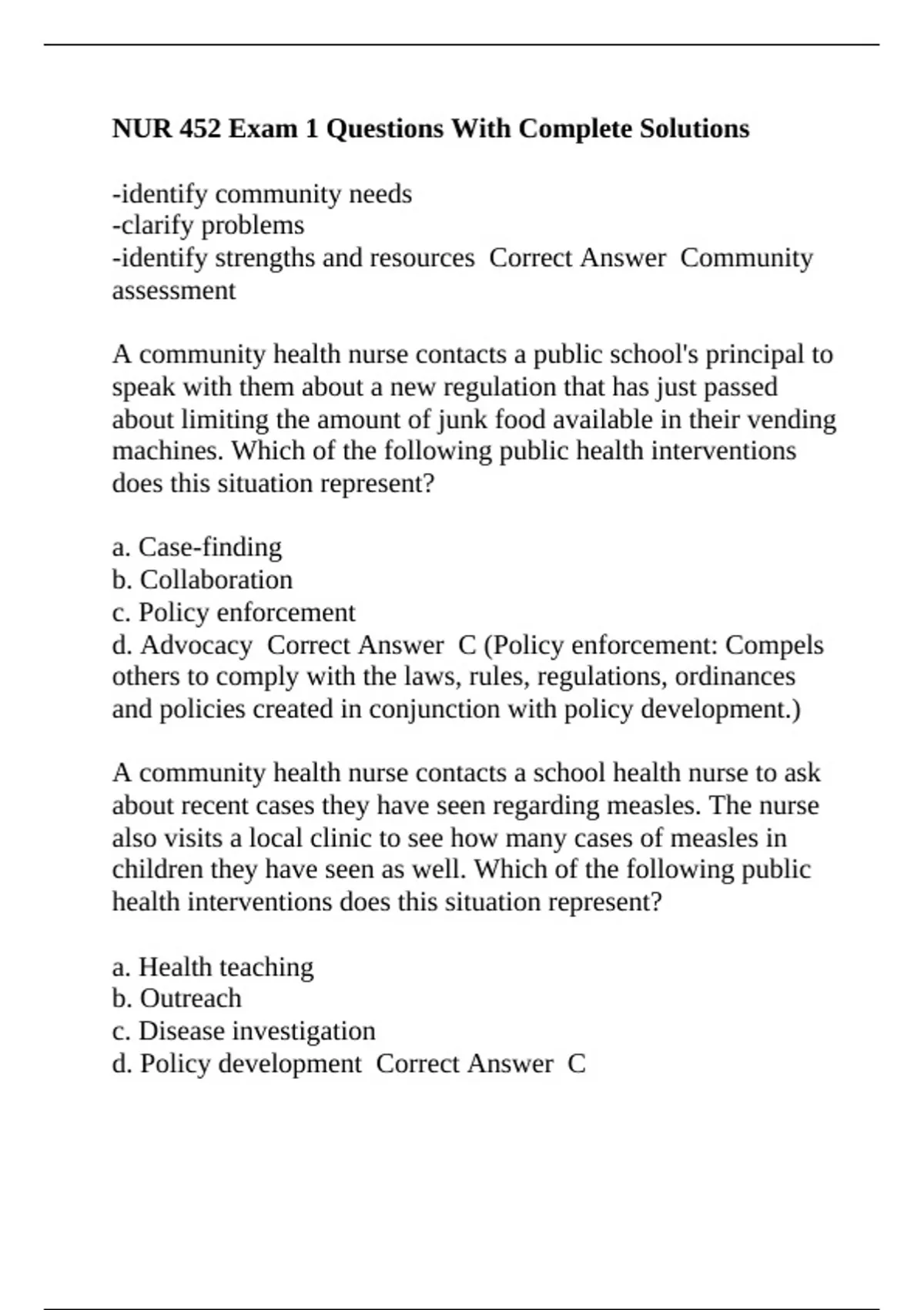 d. Policy development Correct Answer C