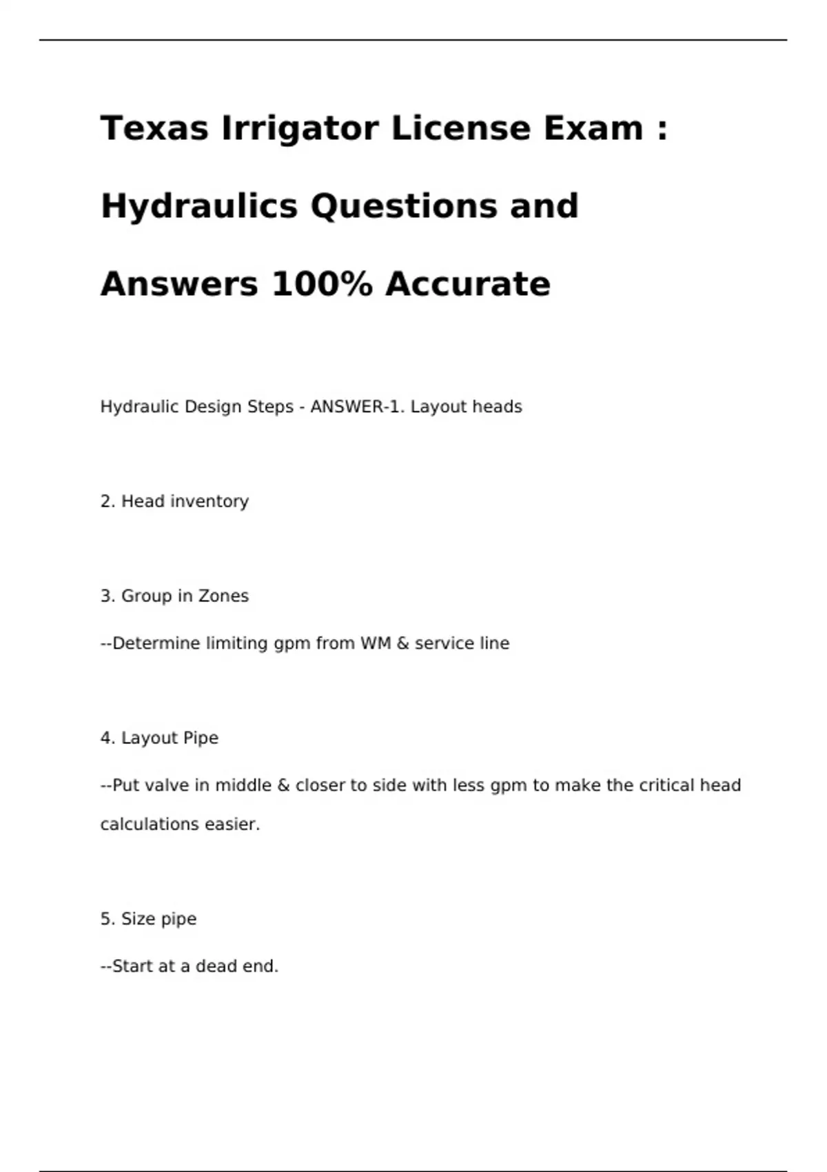 Hydraulic Design Steps - ANSWER-1. Layout heads