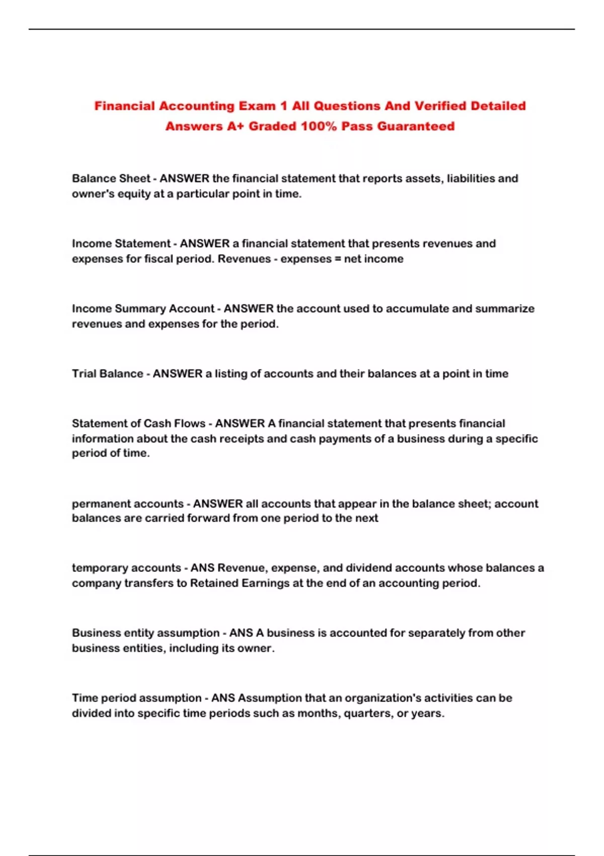 Financial Accounting Exam 1 All Questions And Verified Detailed
