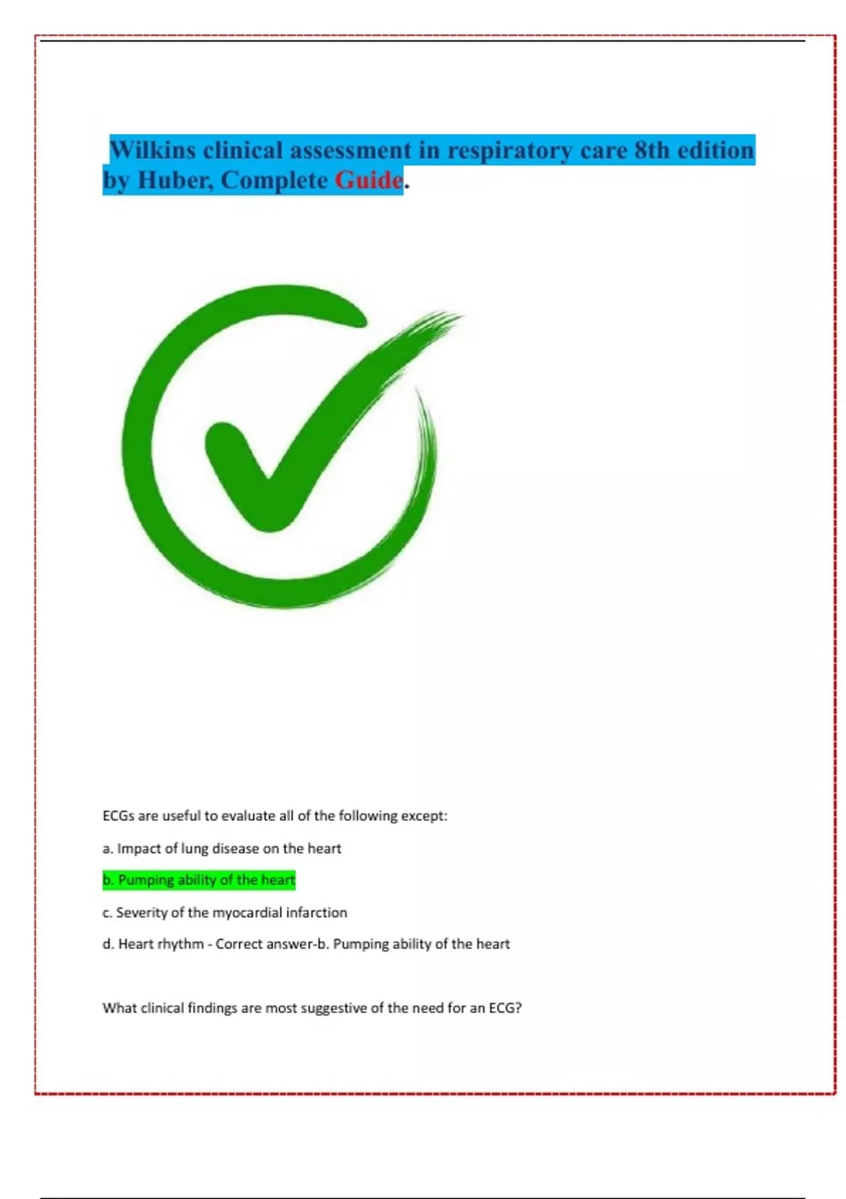 Wilkins clinical assessment in respiratory care 8th edition by Huber, Complete Guide.