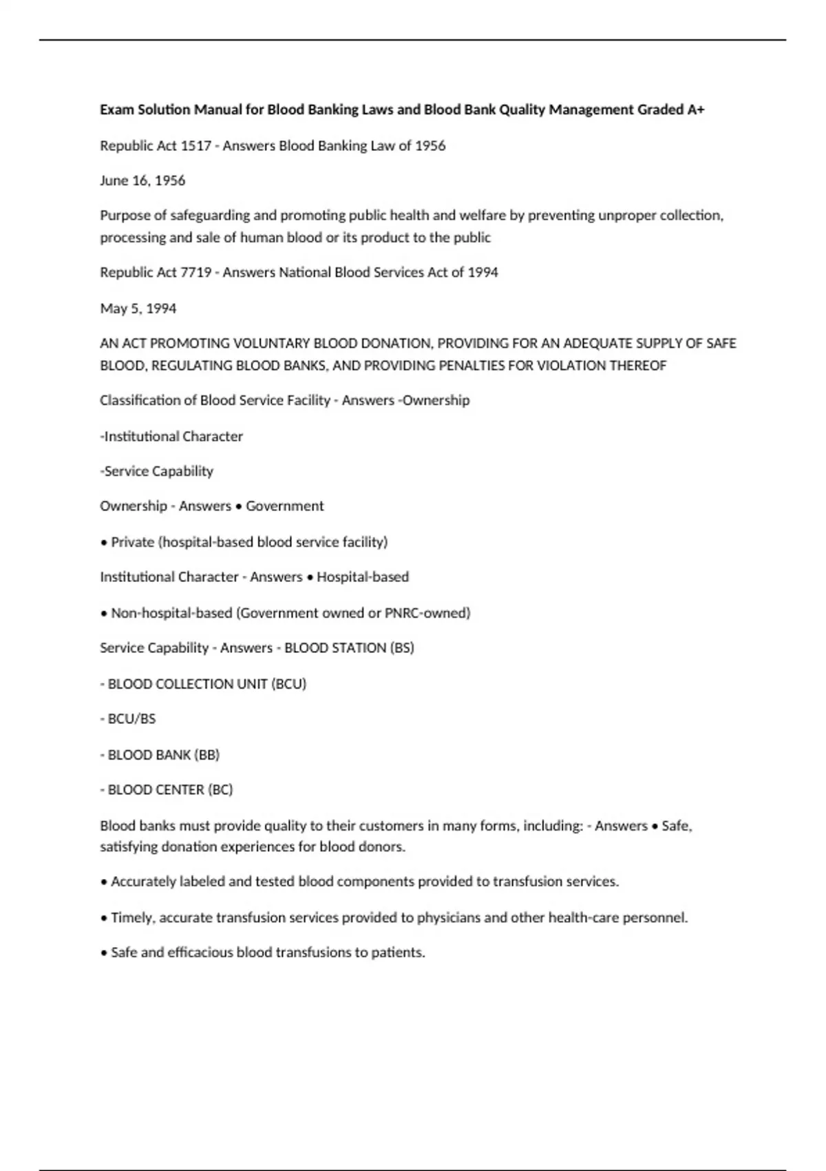 Republic Act 1517 - Answers Blood Banking Law of 1956