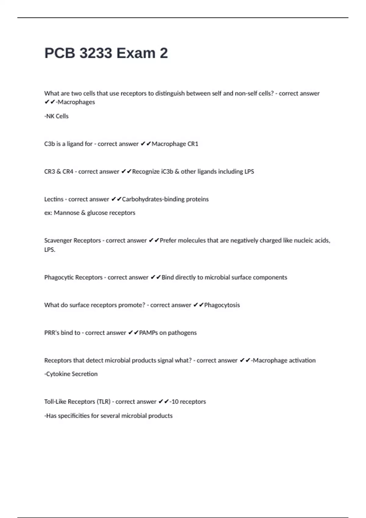 Phagocytic Receptors - correct answer ✔✔Bind directly to microbial surface components