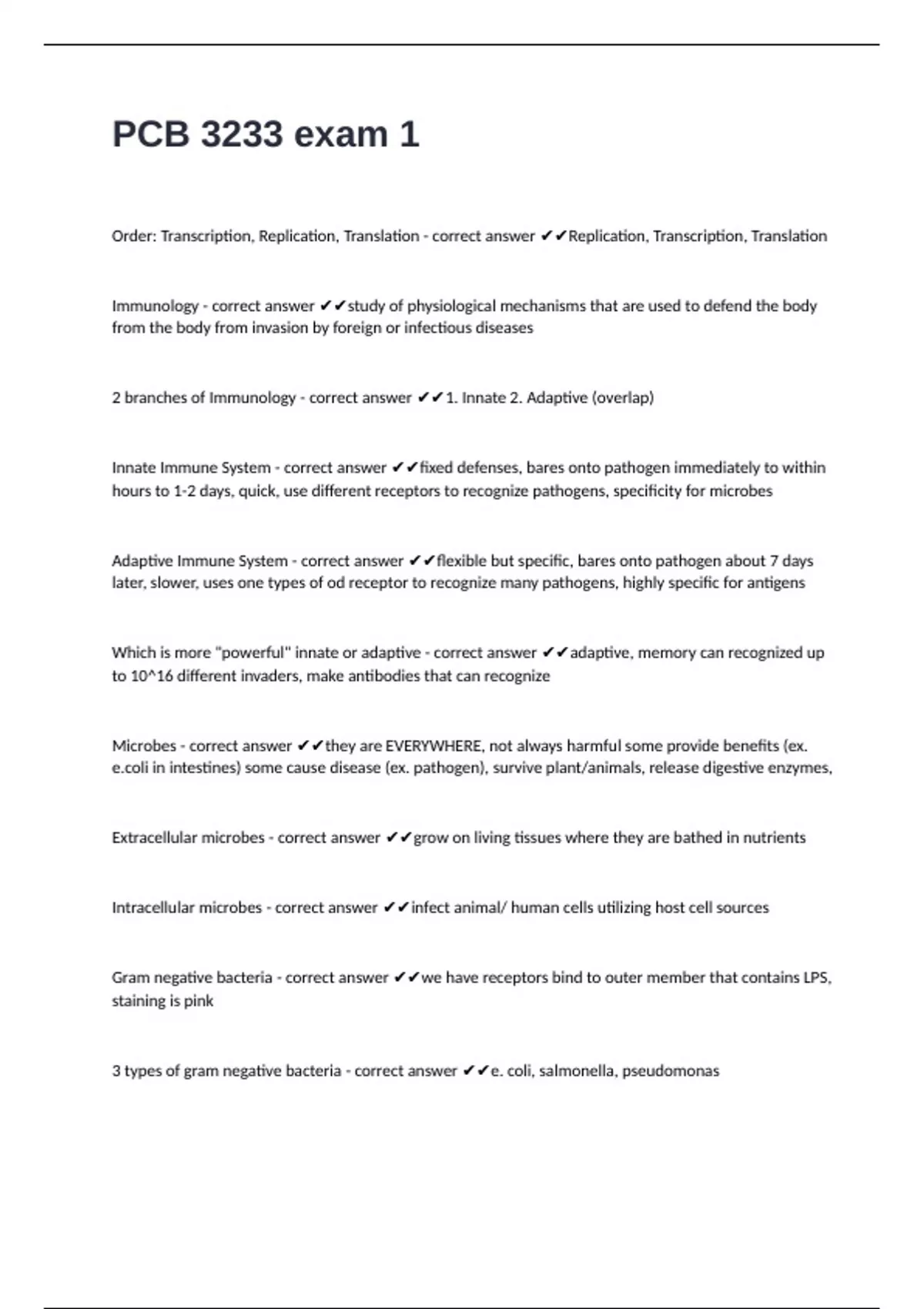 2 branches of Immunology - correct answer ✔✔1. Innate 2. Adaptive (overlap)