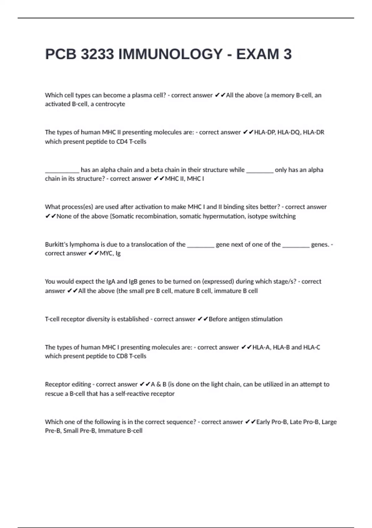 T-cell receptor diversity is established - correct answer ✔✔Before antigen stimulation