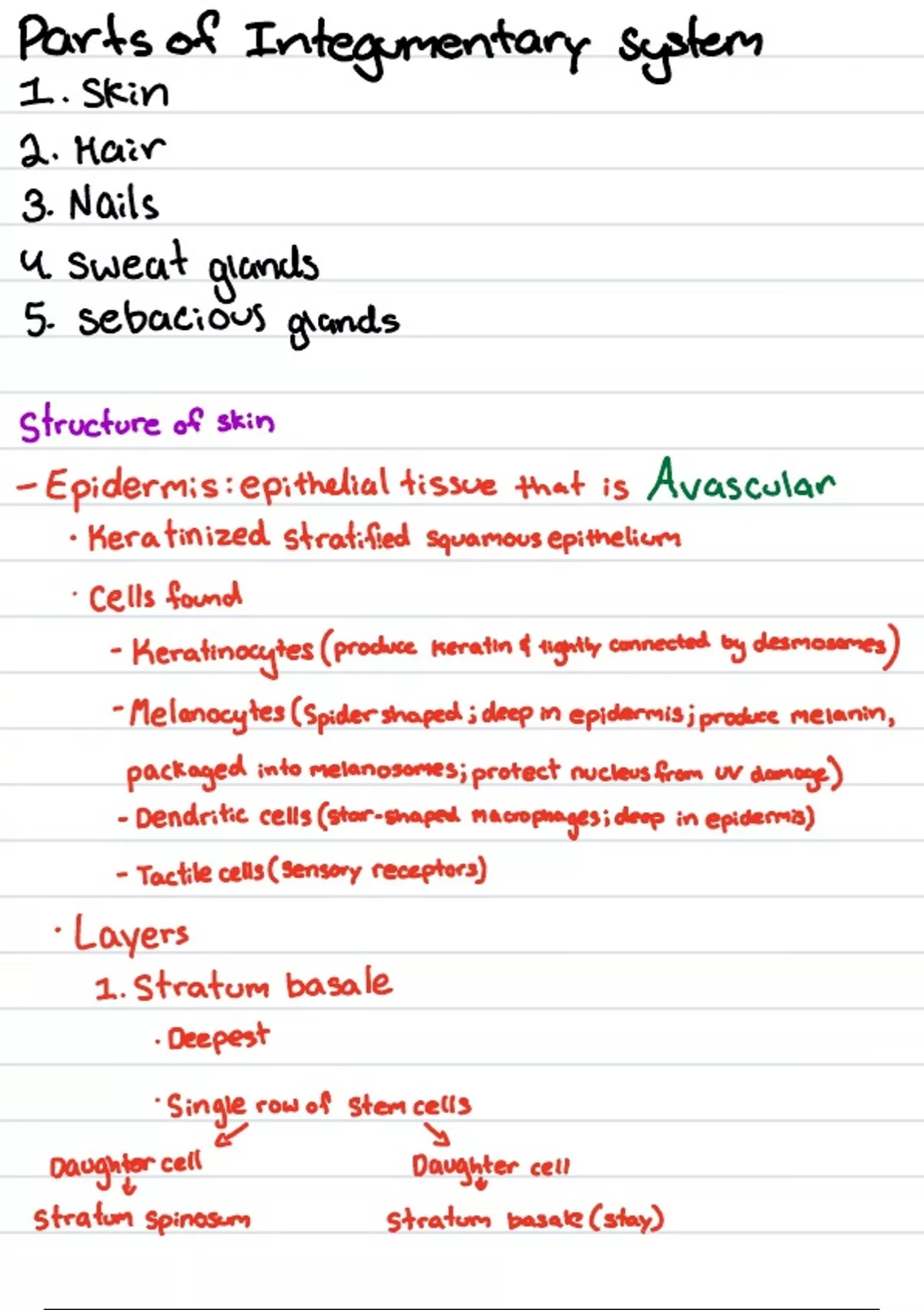 Provides in-depth notes for integumentary system off slides for exam 2