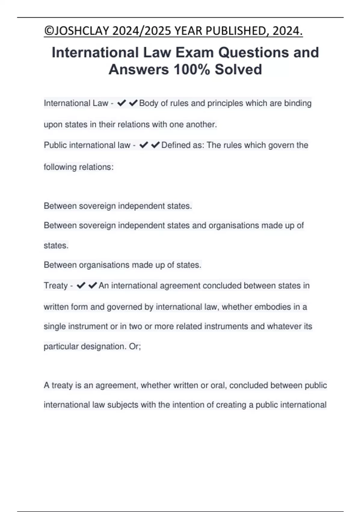 International Law - ✔✔Body of rules and principles which are binding