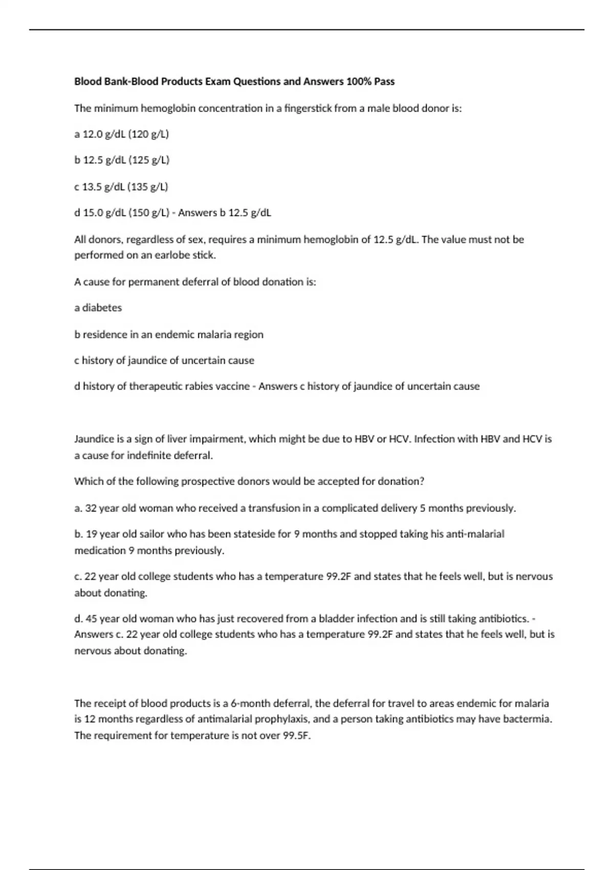 The Hct must be >38%. A donor may be 16 unless state law differs. Temperature must not exceed 99.5F,