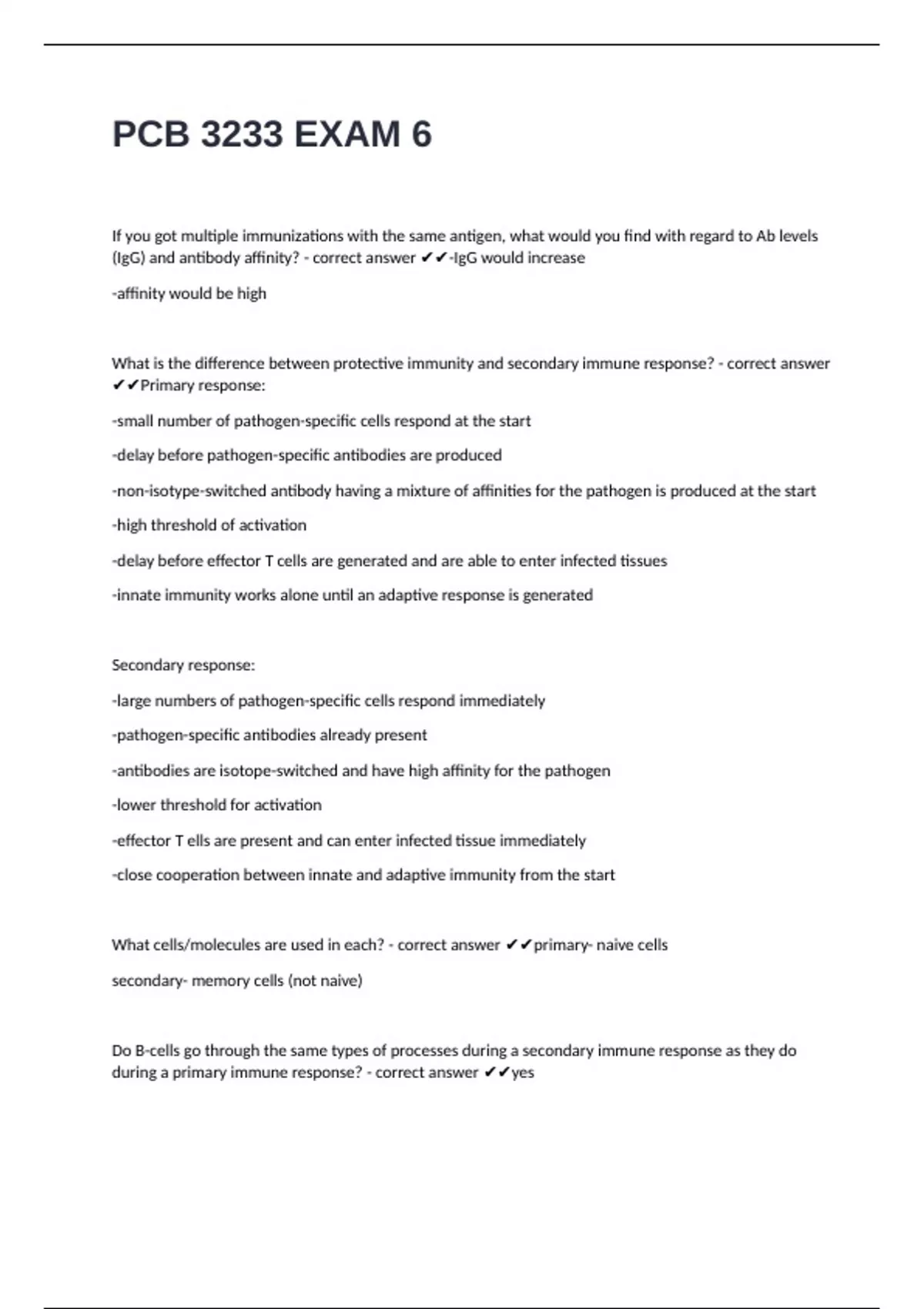 Can a naive B cell be activated in a secondary immune response? - correct answer ✔✔No