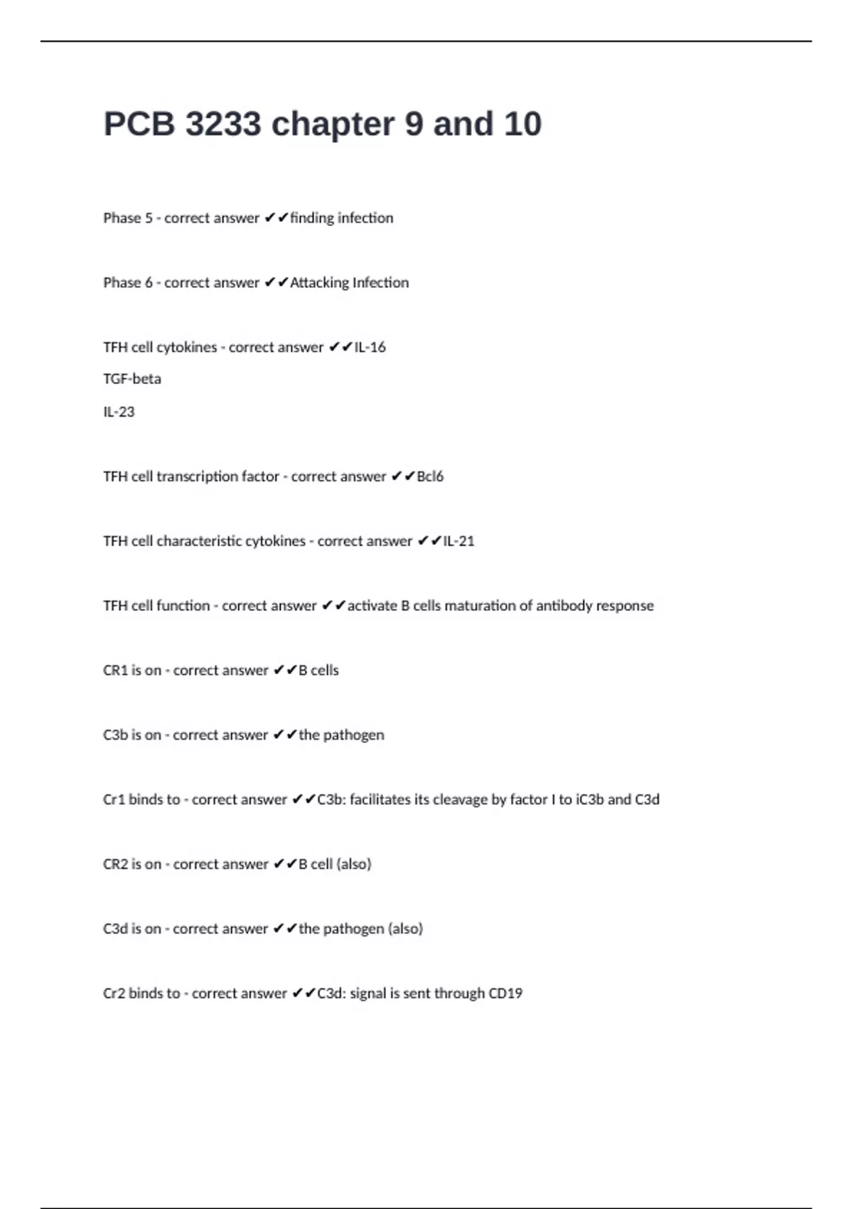 Cr1 binds to - correct answer ✔✔C3b: facilitates its cleavage by factor I to iC3b and C3d