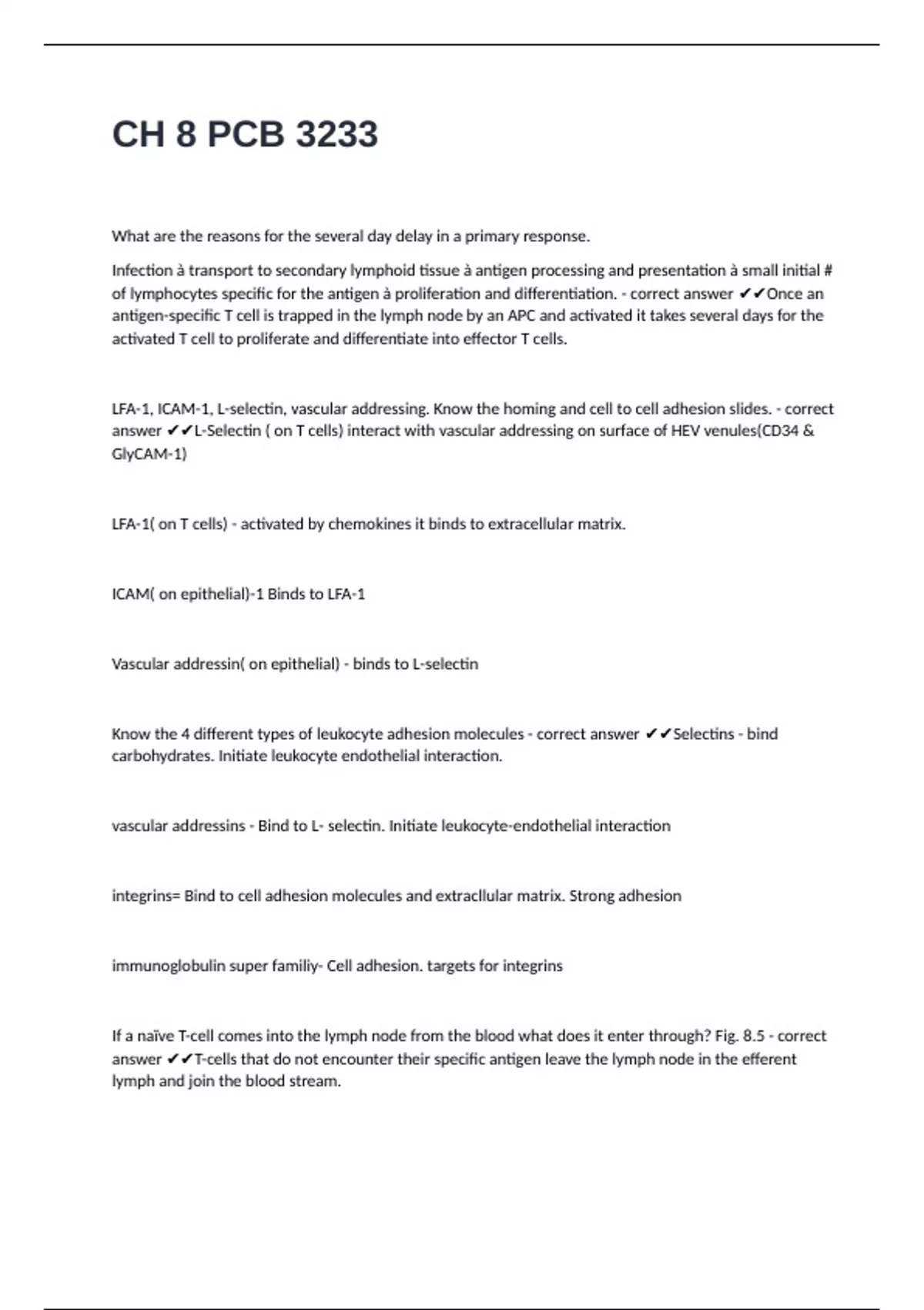 LFA-1, ICAM-1, L-selectin, vascular addressing. Know the homing and cell to cell adhesion slides. - correct
