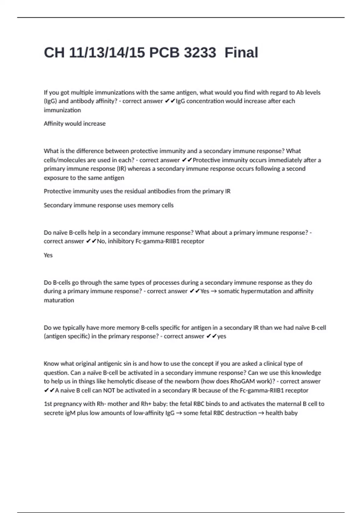(antigen specific) in the primary response? - correct answer ✔✔yes