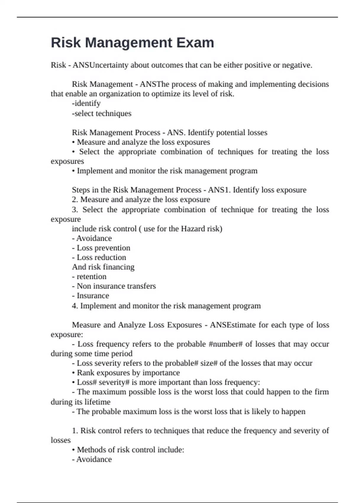 Steps in the Risk Management Process - ANS1. Identify loss exposure