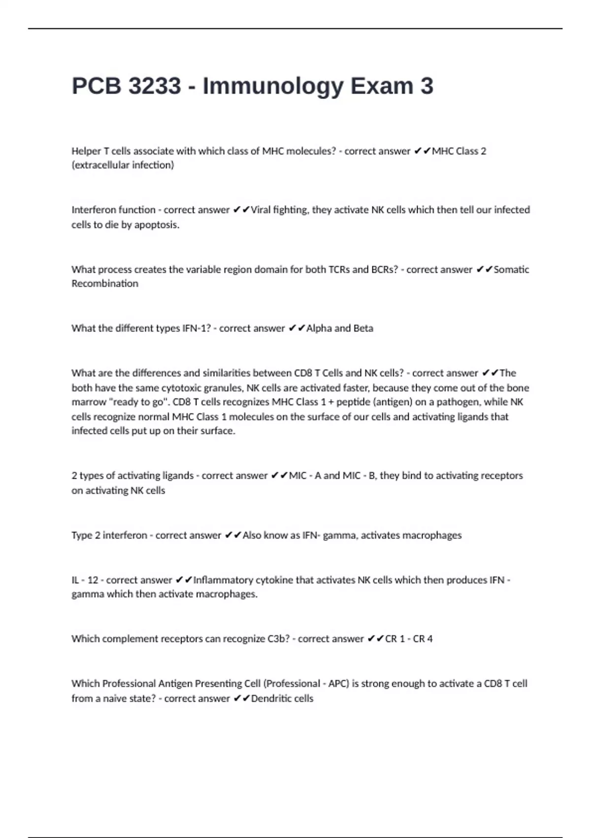 Type 2 interferon - correct answer ✔✔Also know as IFN- gamma, activates macrophages