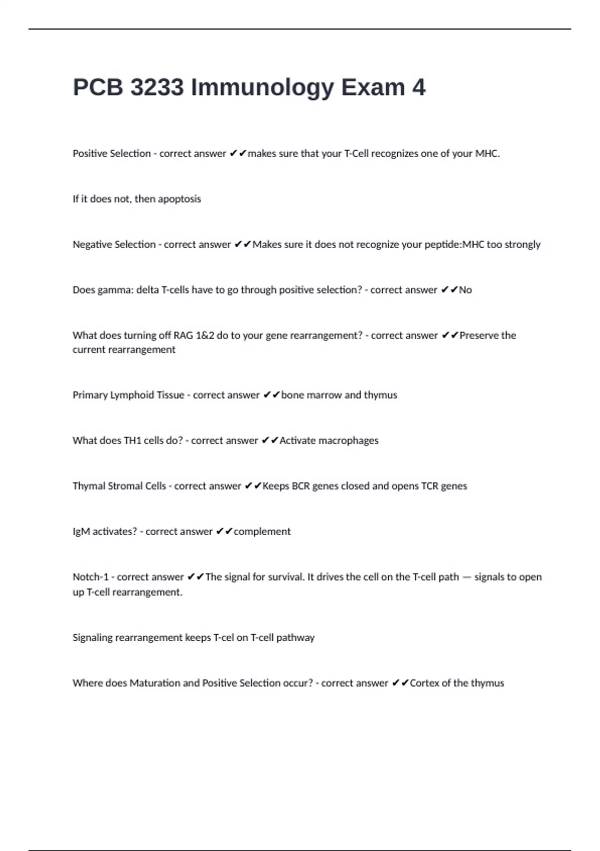 Positive Selection - correct answer ✔✔makes sure that your T-Cell recognizes one of your MHC.