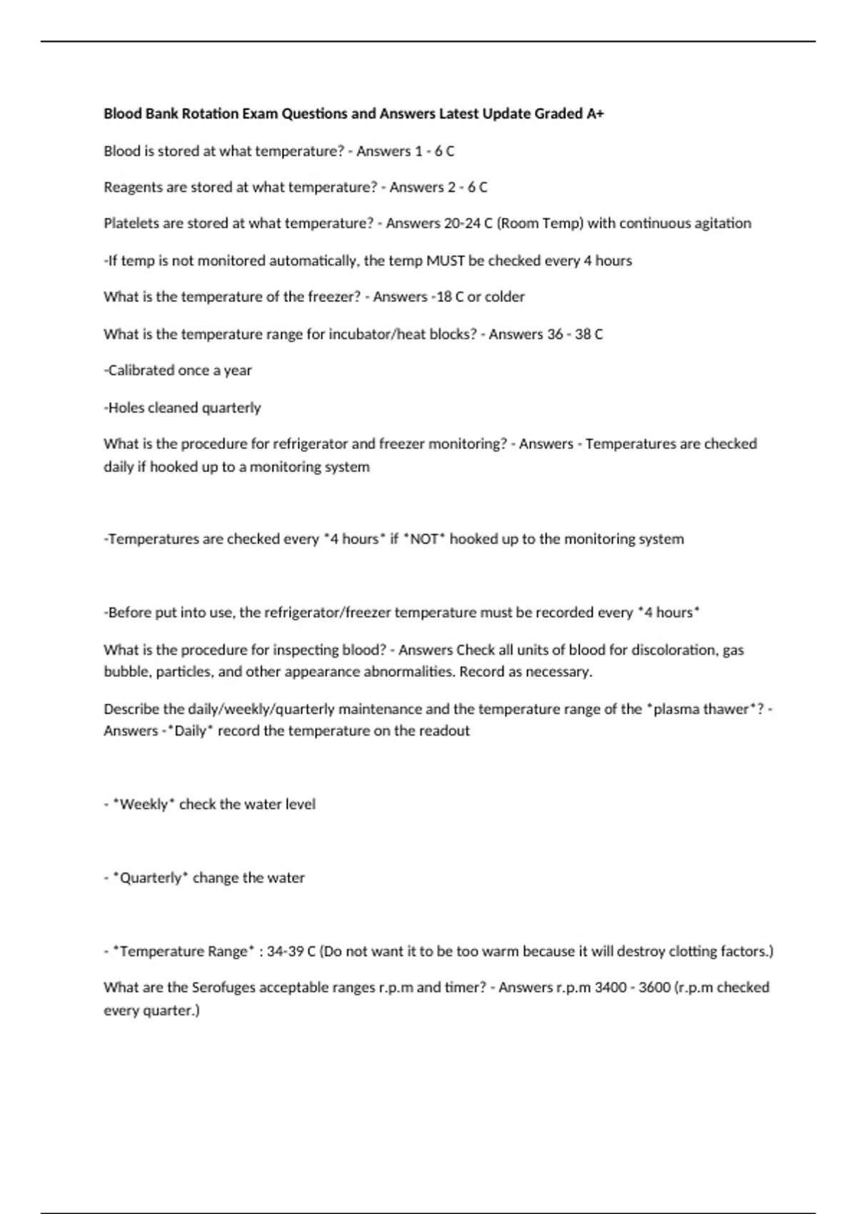 Blood is stored at what temperature? - Answers 1 - 6 C