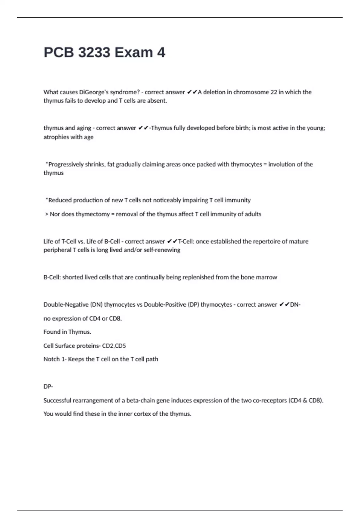 Double-Negative (DN) thymocytes vs Double-Positive (DP) thymocytes - correct answer ✔✔DN-