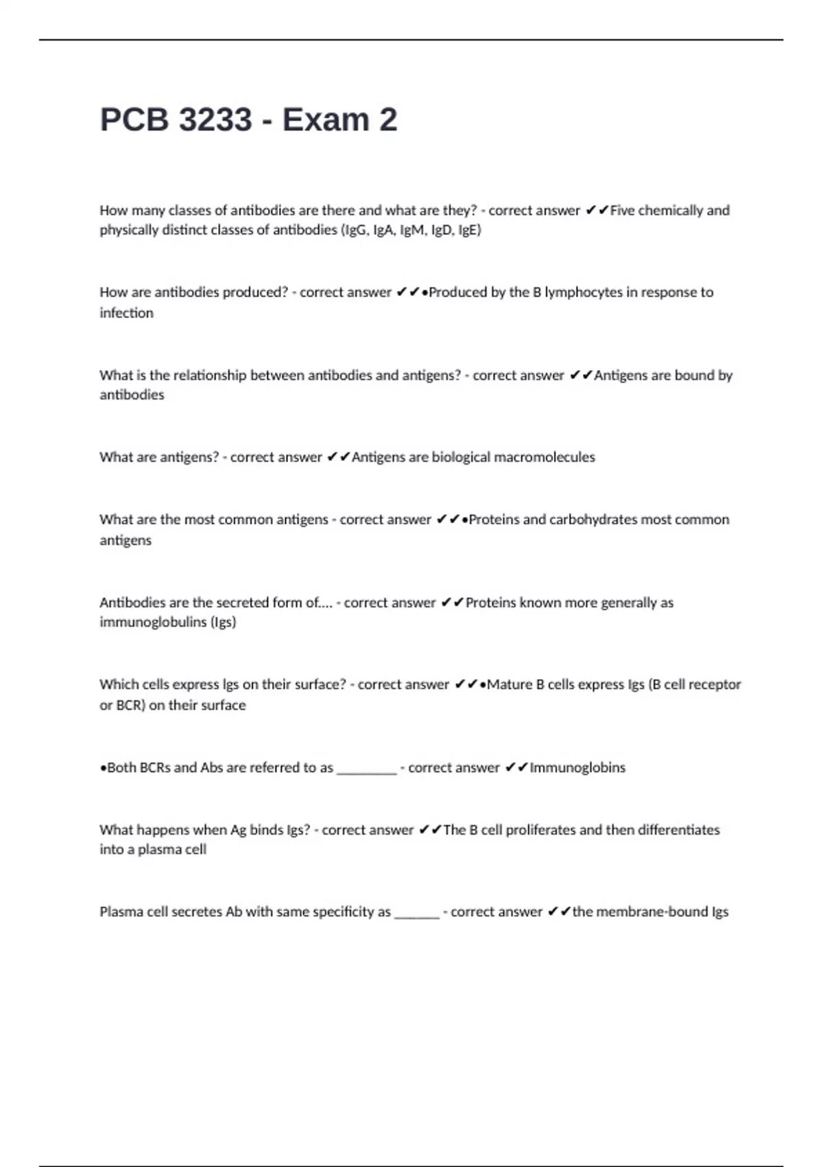 •Both BCRs and Abs are referred to as ________ - correct answer ✔✔Immunoglobins