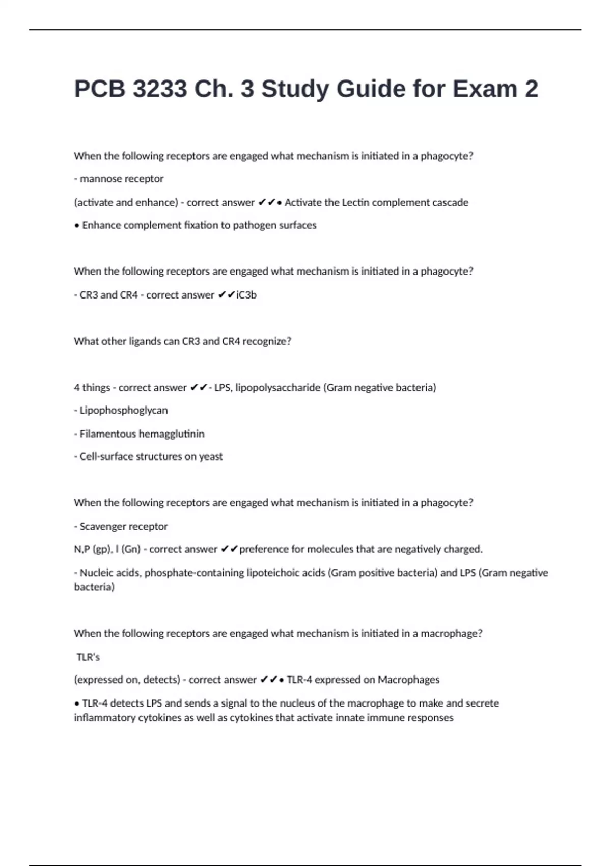 , What does TLR 4 bind to? - correct answer ✔✔lipopolysaccharide