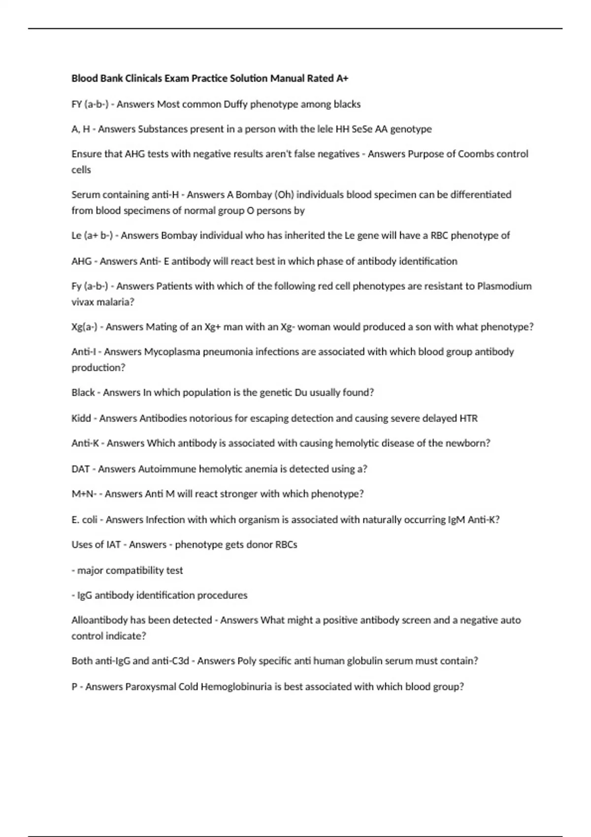 Characteristics of Duffy Antibodies - Answers -IgG