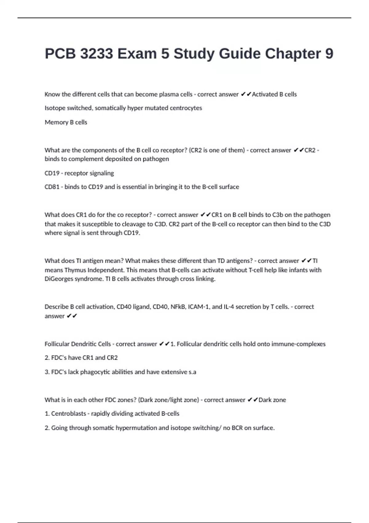 Follicular Dendritic Cells - correct answer ✔✔1. Follicular dendritic cells hold onto immune-complexes