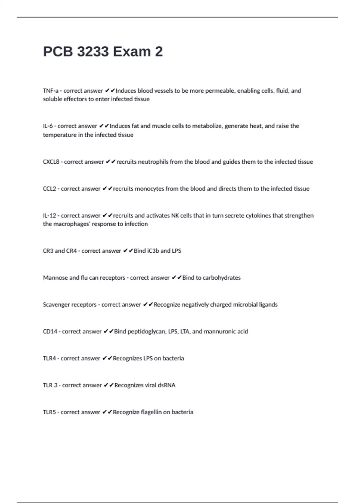 TLR4 - correct answer ✔✔Recognizes LPS on bacteria