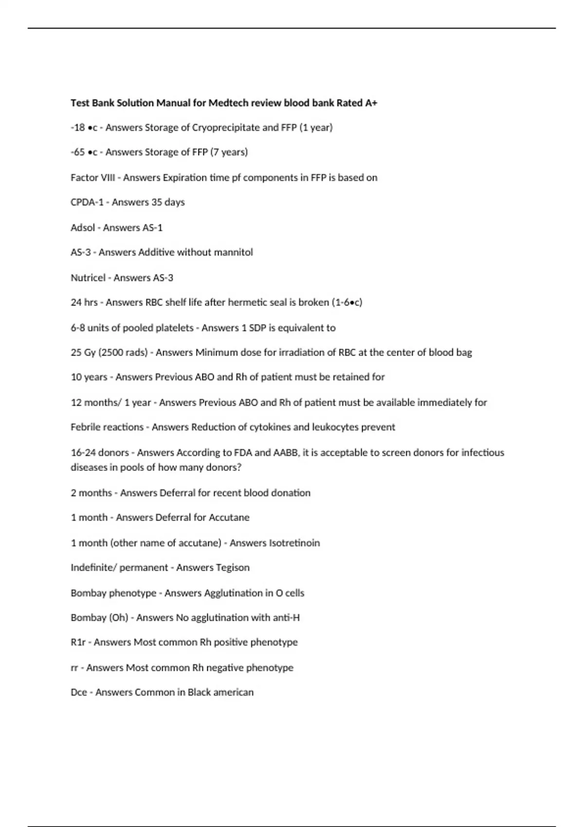 -18 •c - Answers Storage of Cryoprecipitate and FFP (1 year)