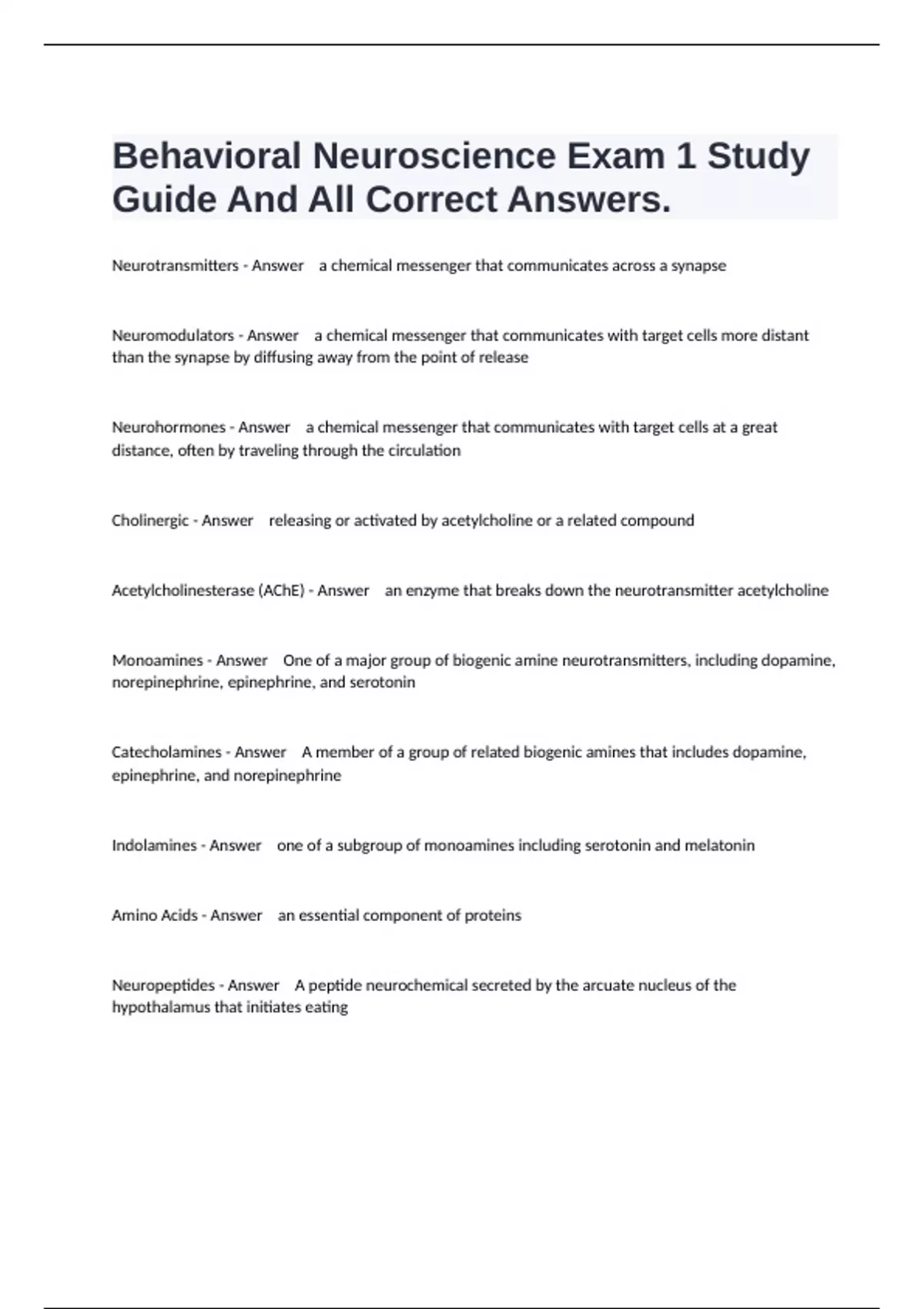 GABA (Gamma Aminobutyric Acid) - Answer A major inhibitory amino acid neurotransmitter