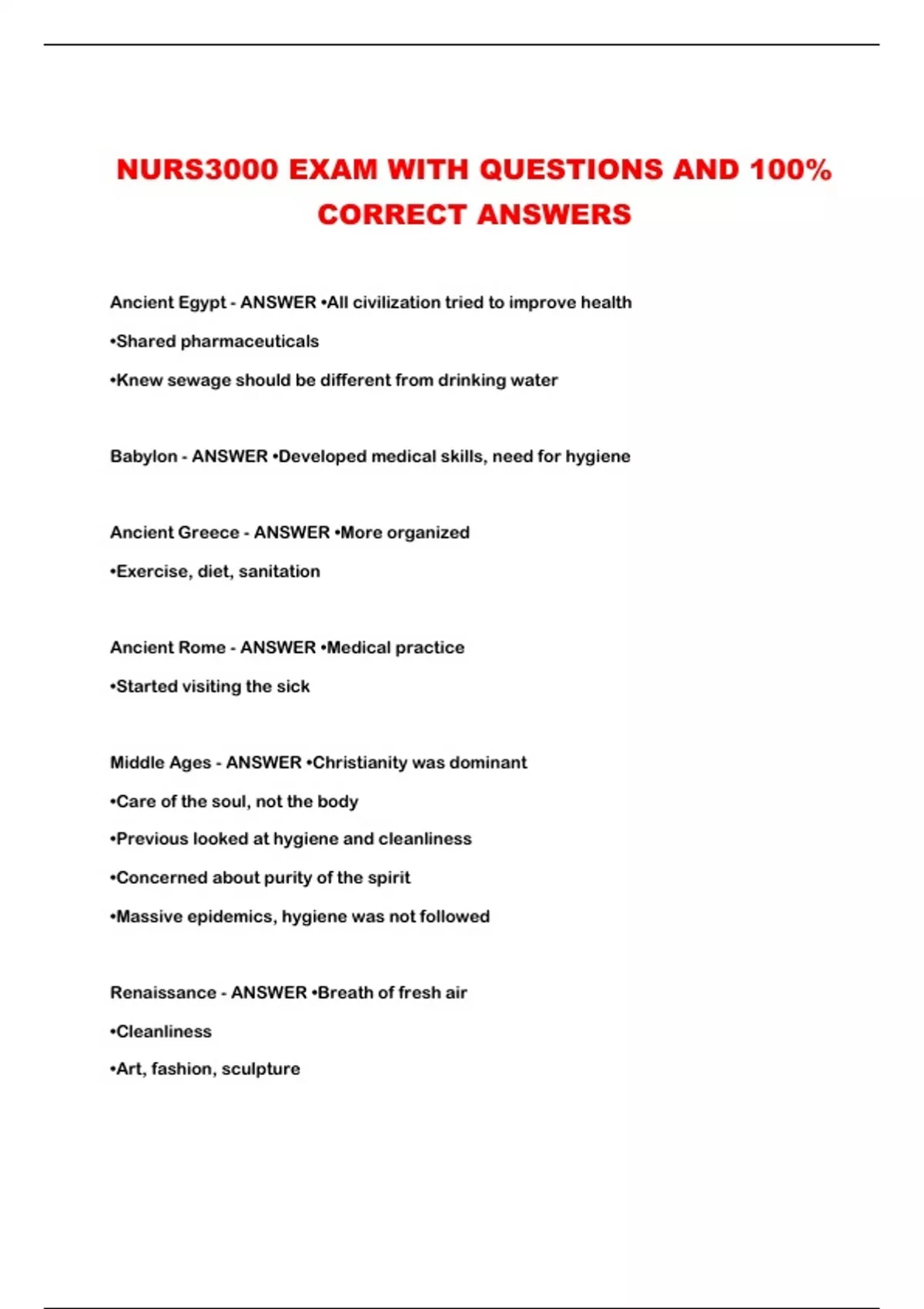 NURS3000 EXAM WITH QUESTIONS AND 100%