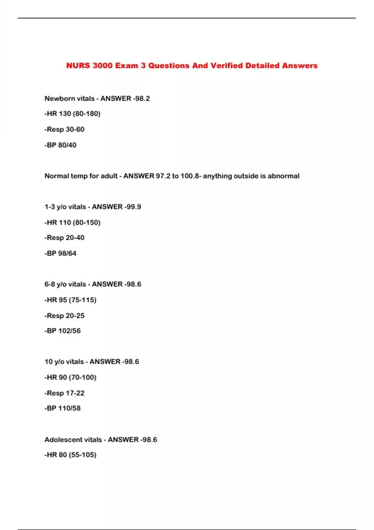 NURS 3000 Exam 3 Questions And Verified Detailed Answers