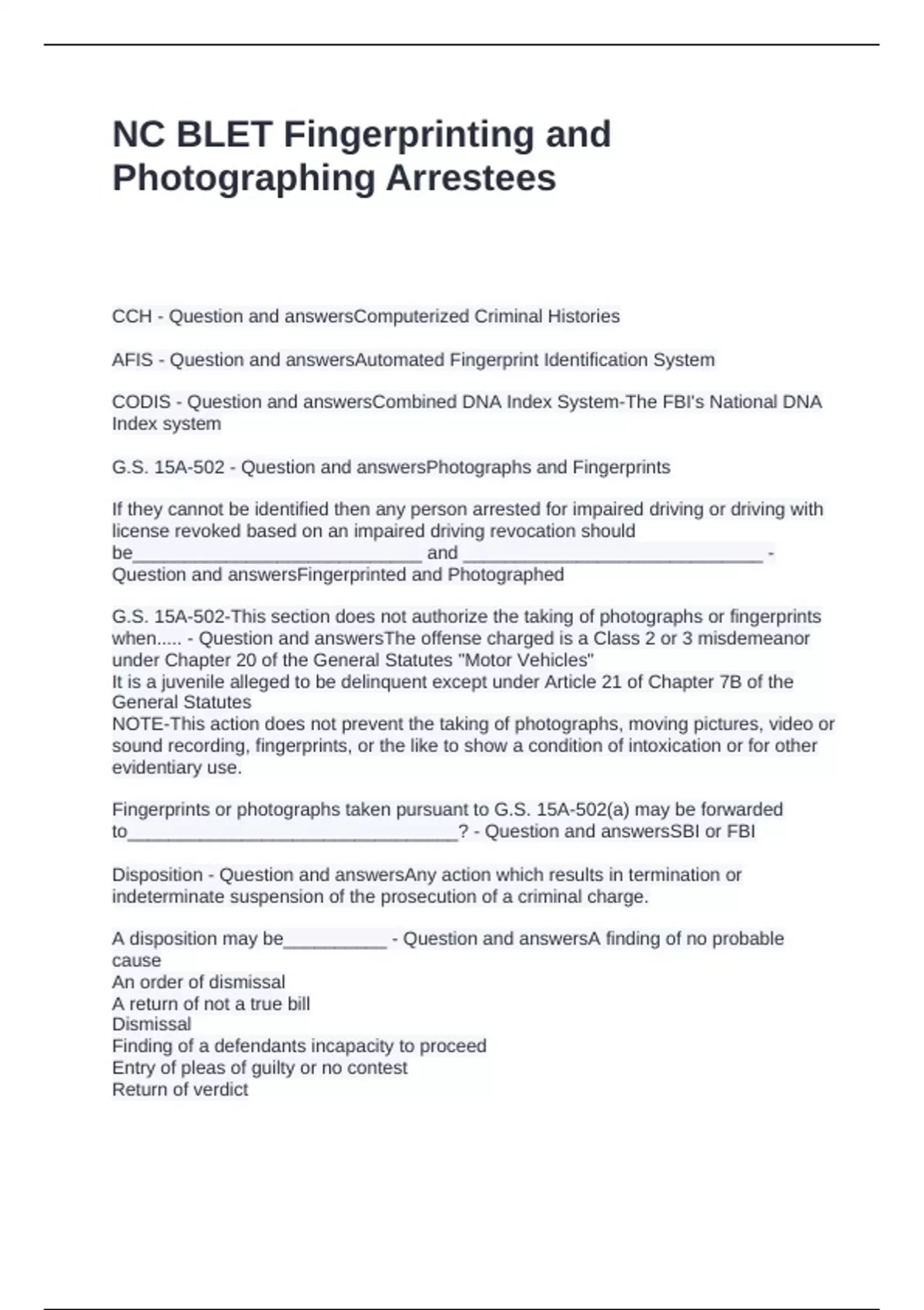 G.S. 15A-502 - Question and answersPhotographs and Fingerprints