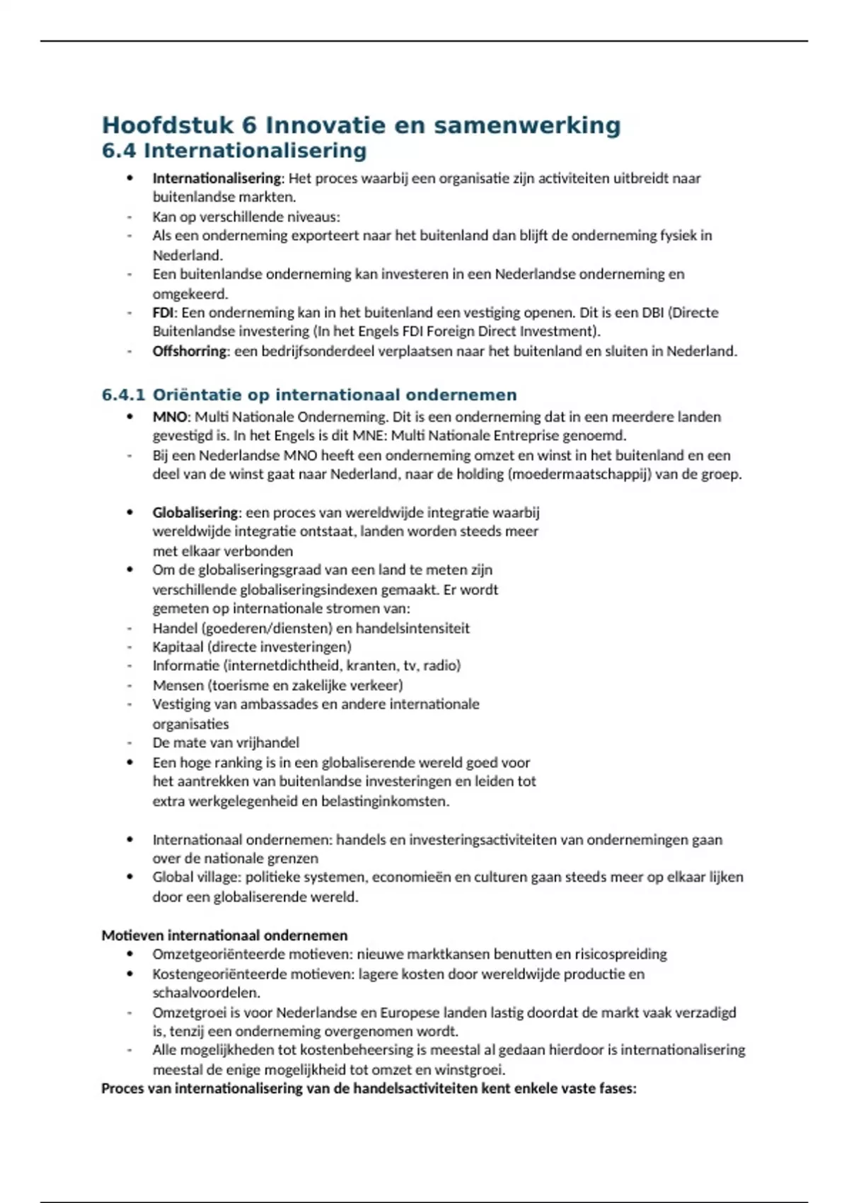  Internationalisering: Het proces waarbij een organisatie zijn activiteiten uitbreidt naar