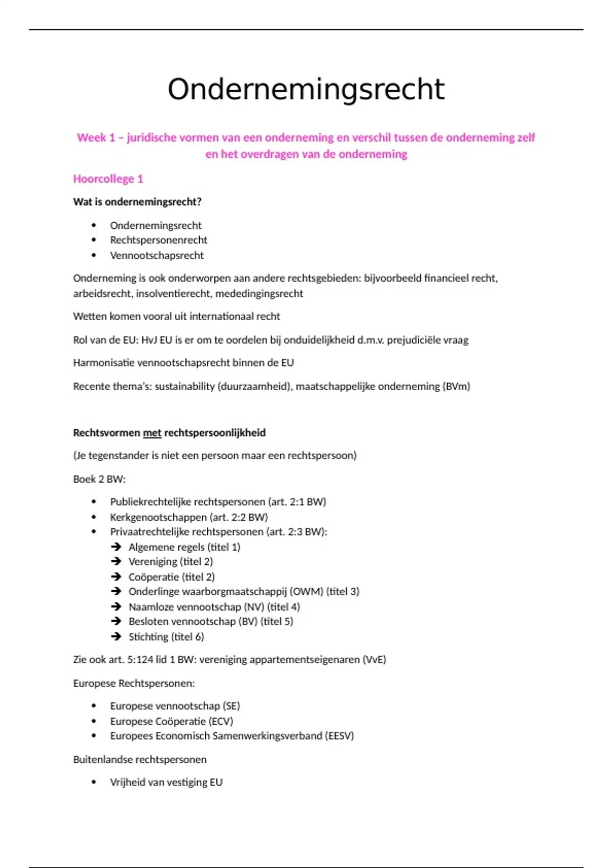 Samenvatting alle stof Ondernemingsrecht week 1-7
