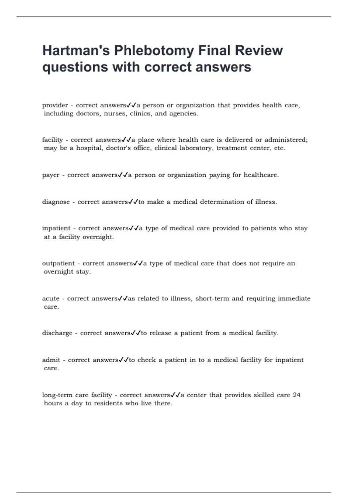 outpatient |- |correct |answers✔✔a |type |of |medical |care |that |does |not |require |an
