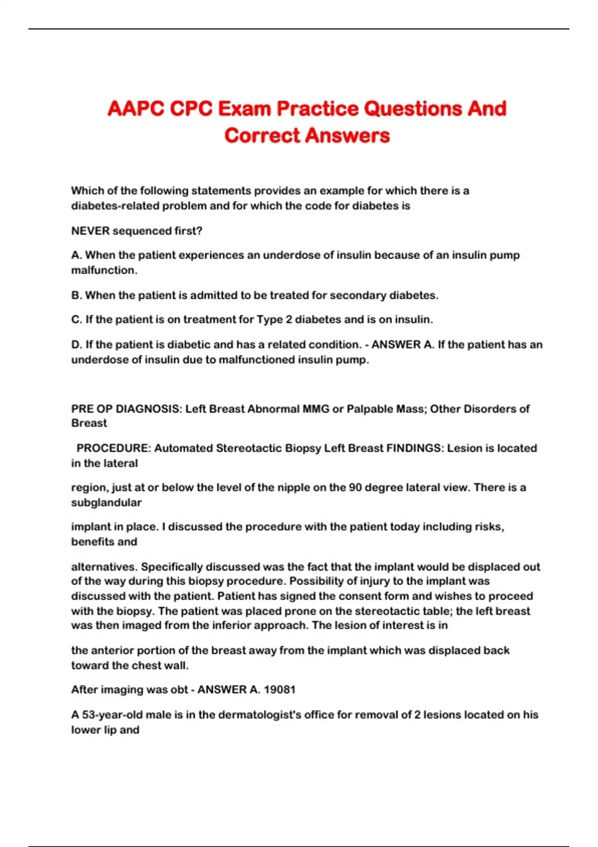 AAPC CPC Exam Practice Questions And