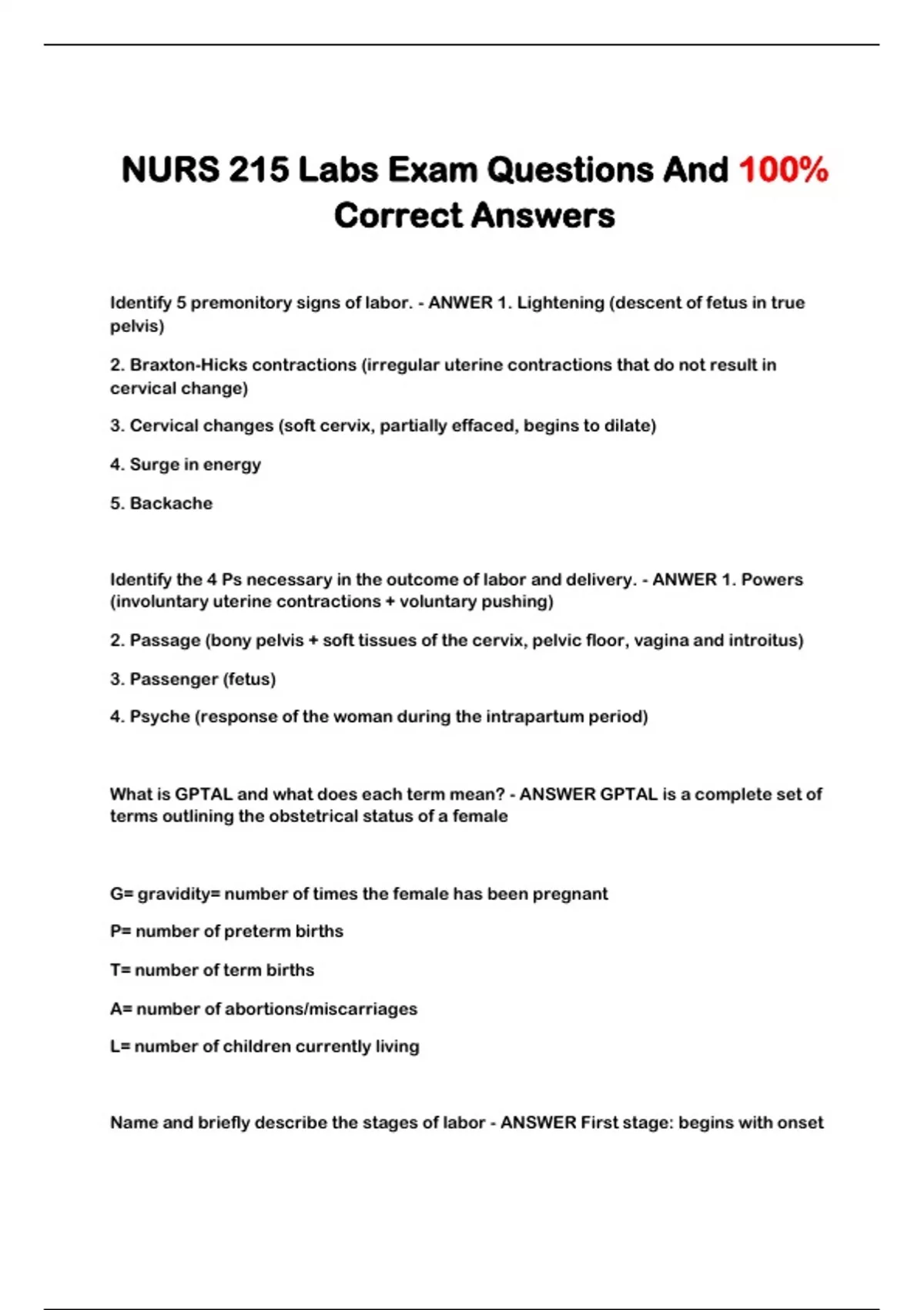 NURS 215 Labs Exam Questions And 100%