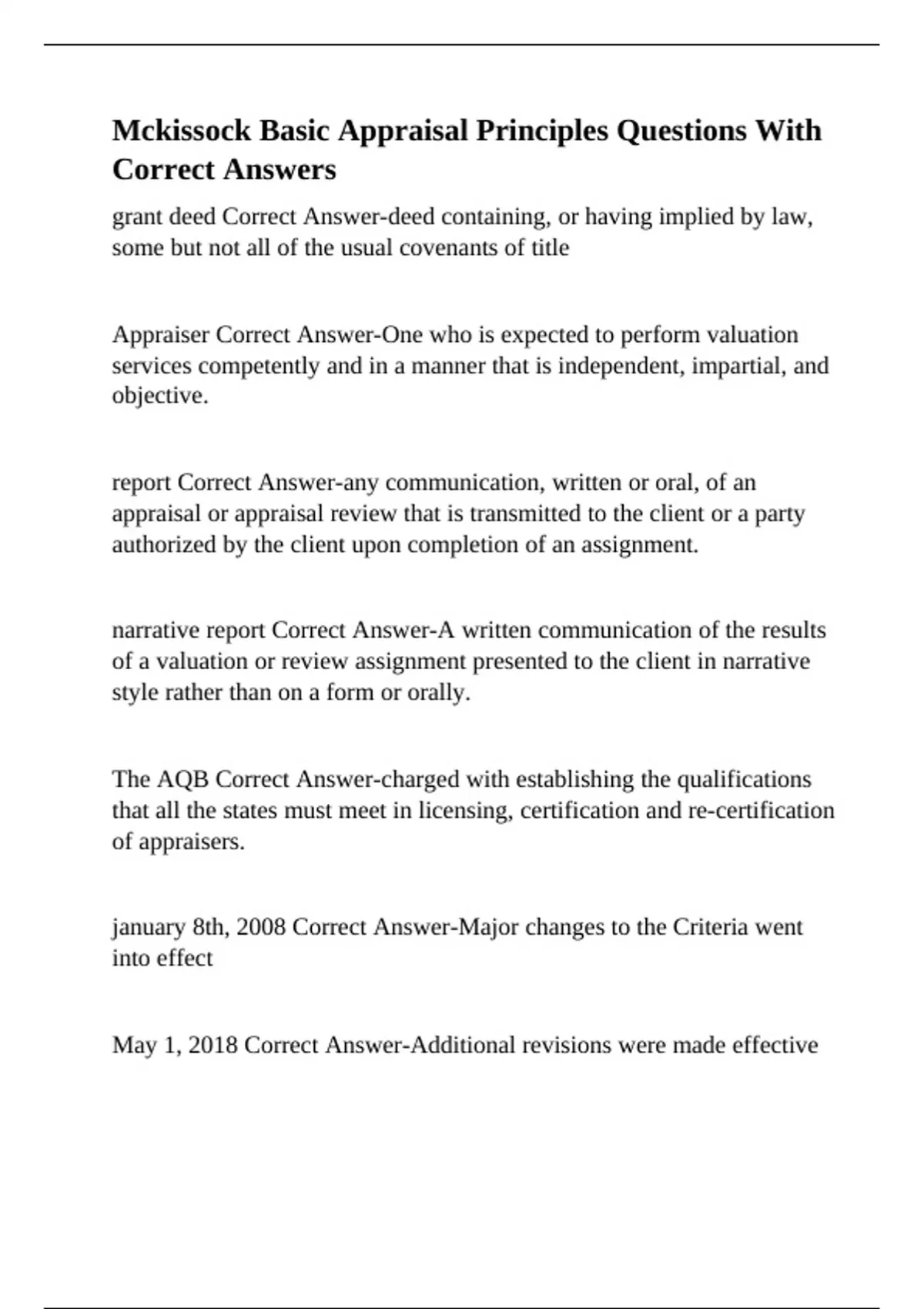 May 1, 2018 Correct Answer-Additional revisions were made effective