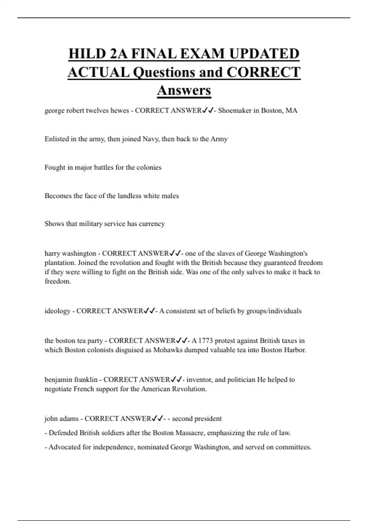 harry washington - CORRECT ANSWER✔✔- one of the slaves of George Washington's