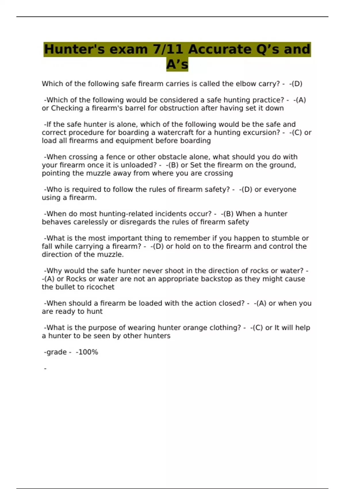 Hunter's exam 7/11 Accurate Q’s and