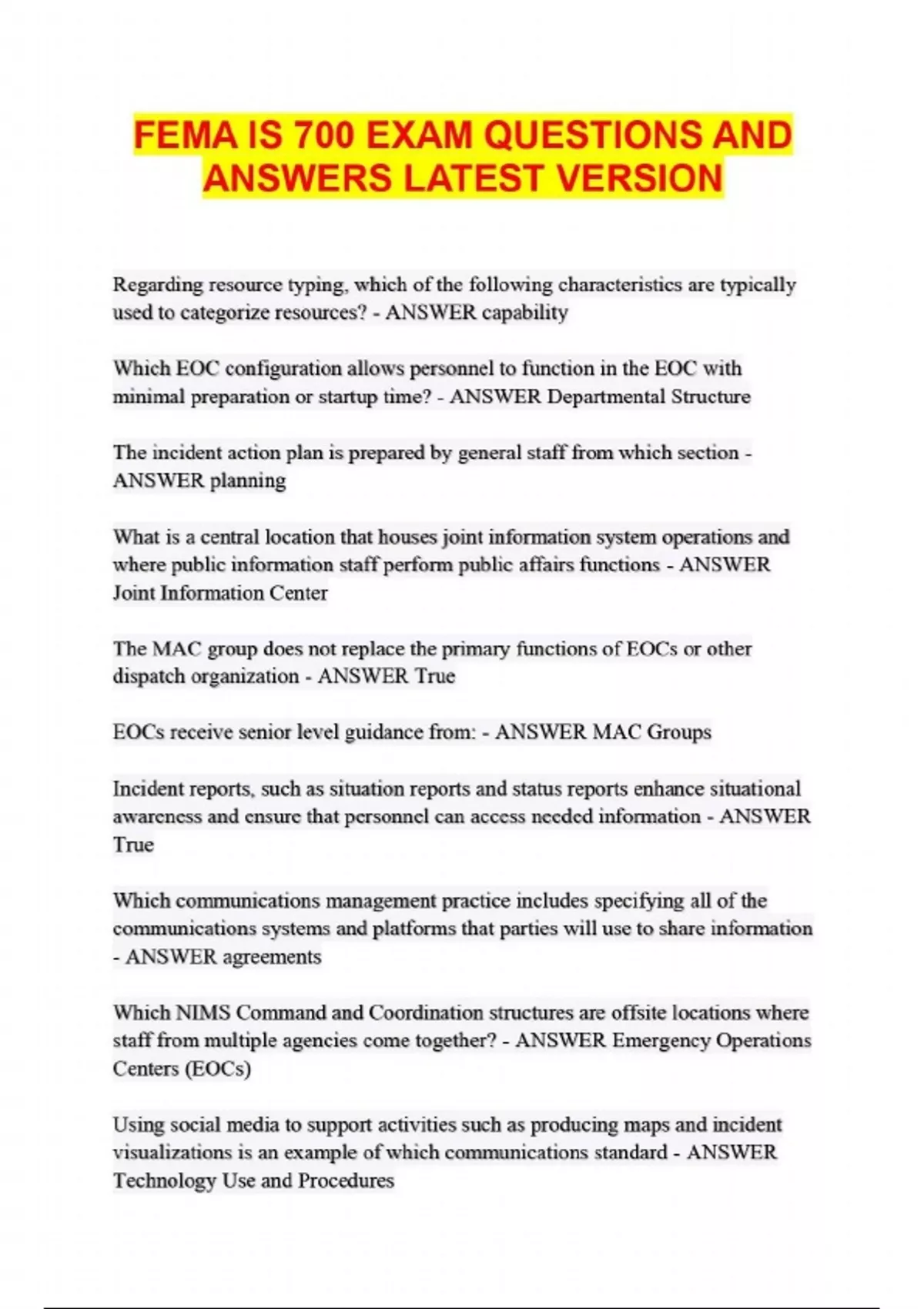 FEMA IS 700 EXAM QUESTIONS AND ANSWERS LATEST VERSION