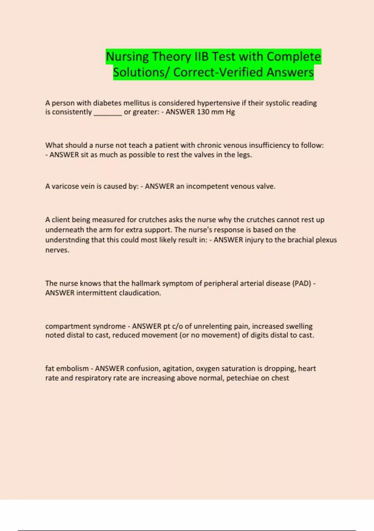 Nursing Theory IIB Test with Complete