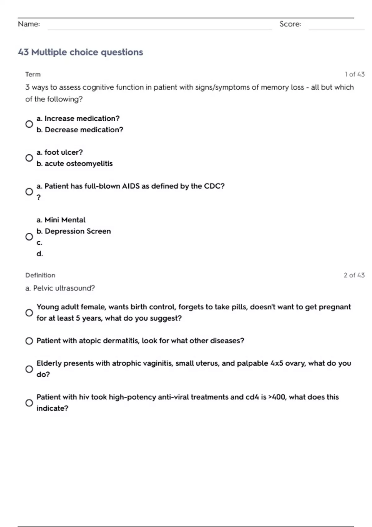 43 Multiple choice questions