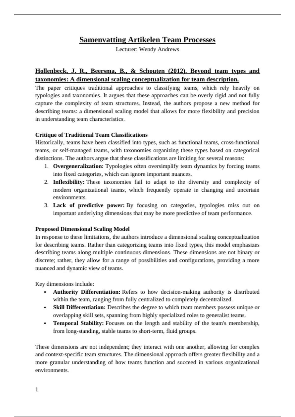Samenvatting Artikelen Team Processes