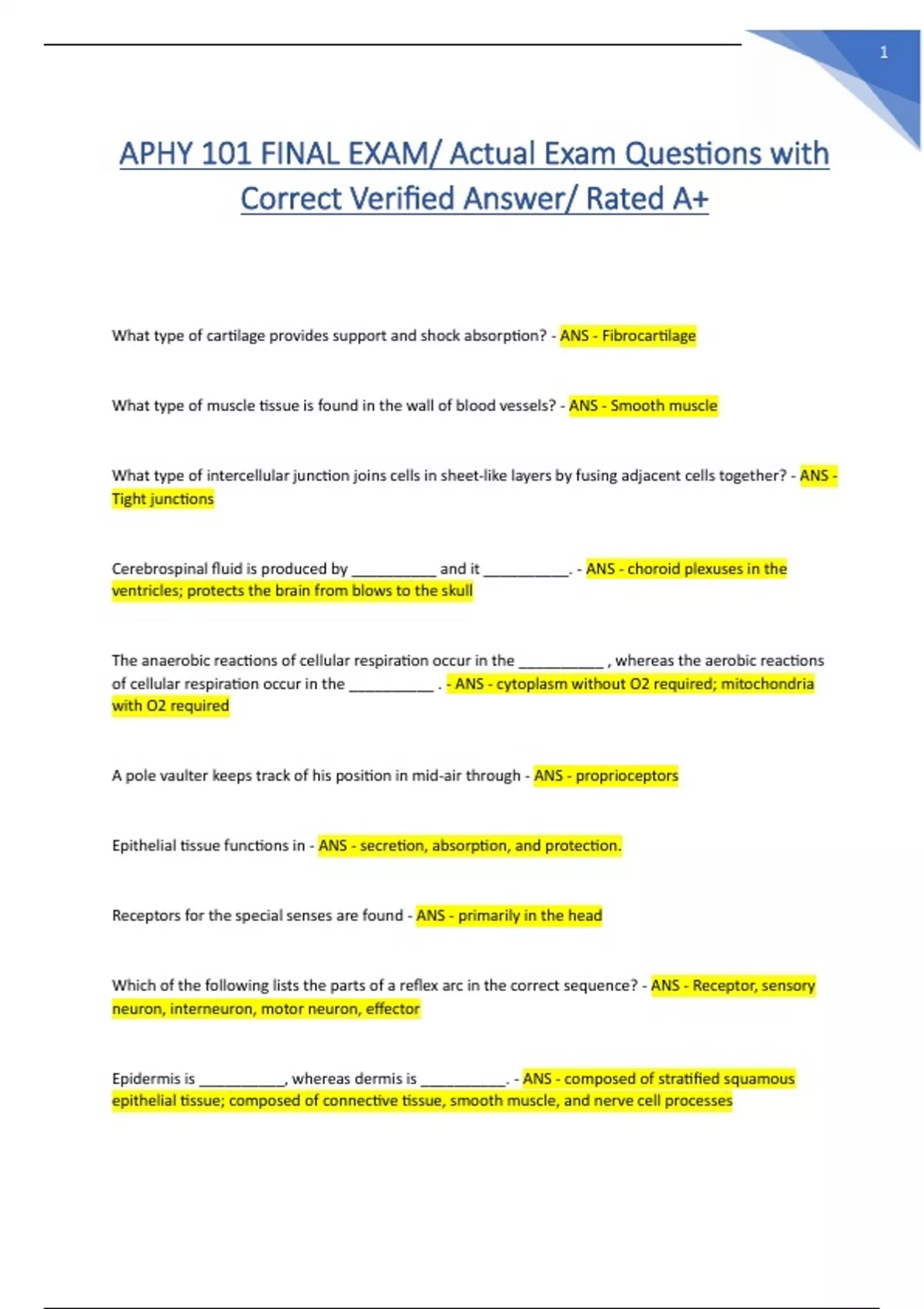 APHY 101 FINAL EXAM/ Actual Exam Questions with