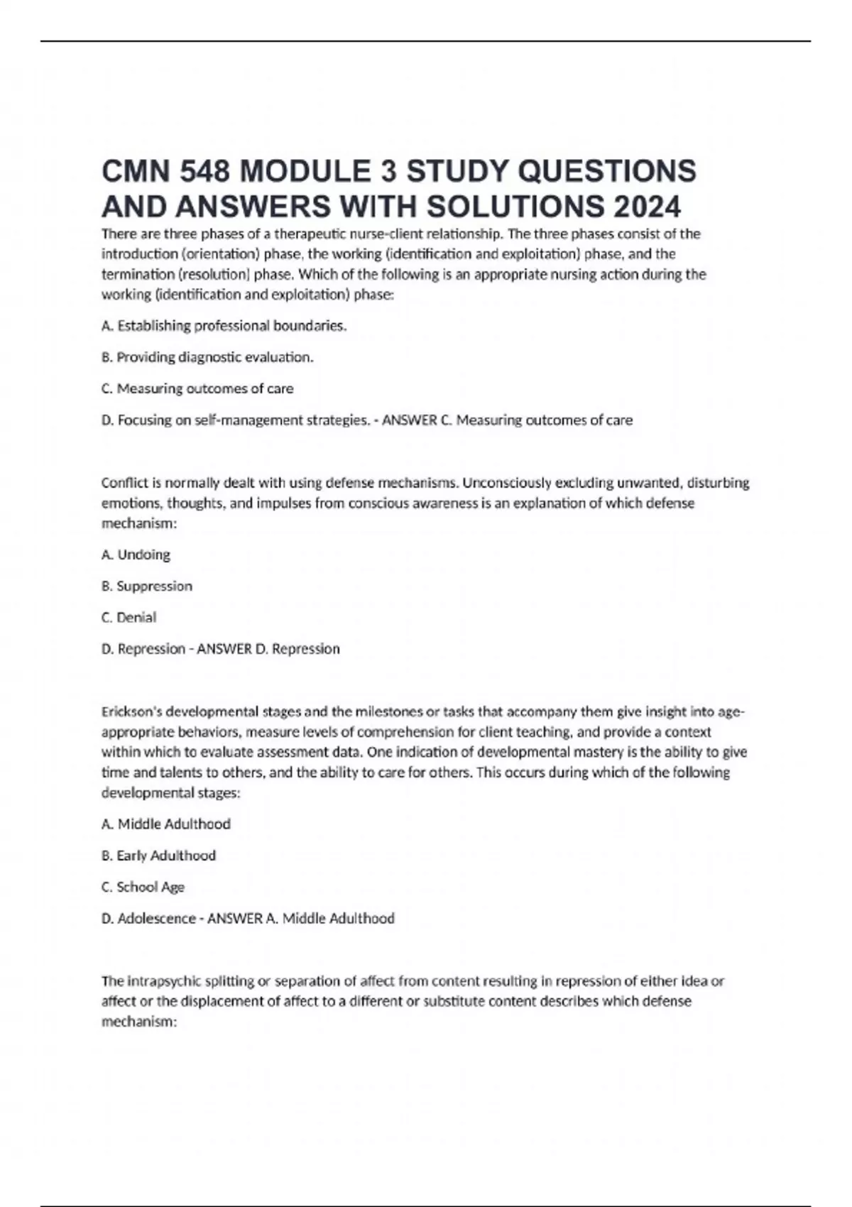 CMN 548 MODULE 3 STUDY QUESTIONS AND ANSWERS WITH SOLUTIONS 2024