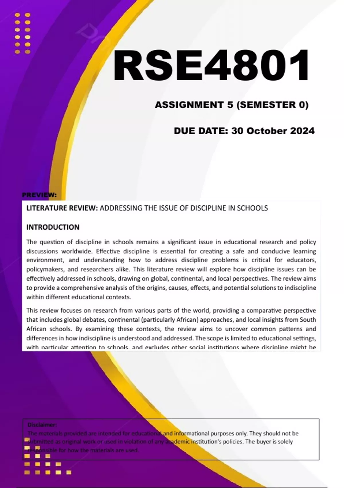 LITERATURE REVIEW: ADDRESSING THE ISSUE OF DISCIPLINE IN SCHOOLS